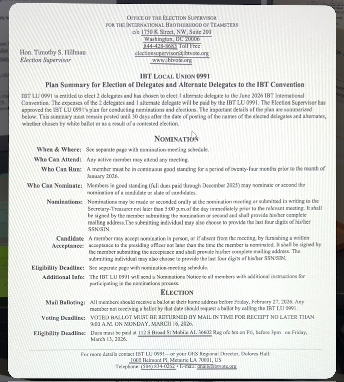 DELEGATE ELECTION PLAN SUMMARY